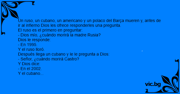 Un ruso, un cubano, un americano y un polaco del Barça mueren y, antes de ir al infierno Dios les ofrece responderles una pregunta.