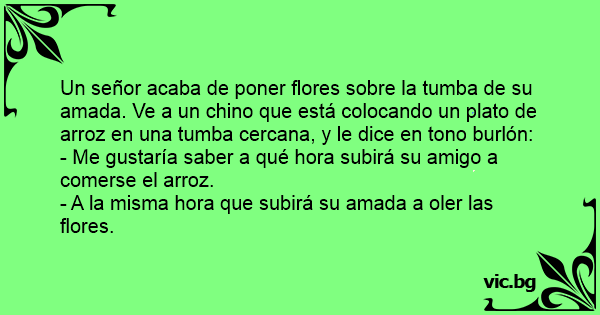 Un señor acaba de poner flores sobre la tumba de su amada. Ve a un chino que está colocando un plato de arroz en una tumba cercana, y le dice en tono burlón: