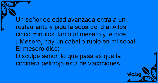 Un señor de edad avanzada entra a un restaurante y pide la sopa del día. A los cinco minutos llama al mesero y le dice: