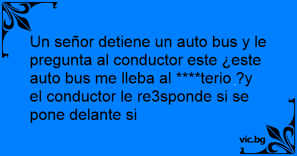 Un señor detiene un auto bus y le pregunta al conductor este ¿este auto bus me lleba al ****terio ?y el conductor le re3sponde si se pone delante si