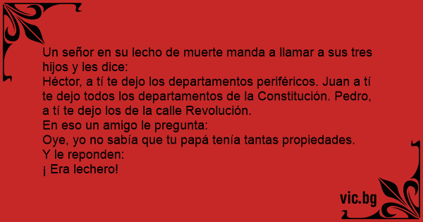 Un señor en su lecho de muerte manda a llamar a sus tres hijos y les dice: