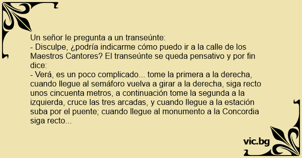 - Disculpe, ¿podría indicarme cómo puedo ir a la calle de los Maestros Cantores? El transeúnte se queda pensativo y por fin dice: