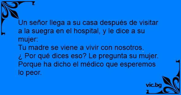 Un señor llega a su casa después de visitar a la suegra en el hospital, y le dice a su mujer: