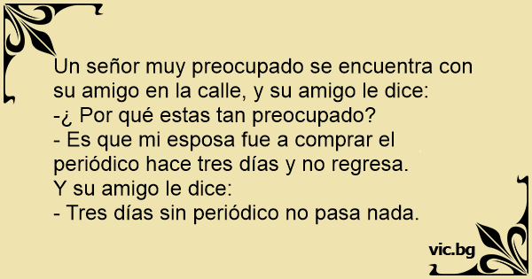 - Es que mi esposa fue a comprar el periódico hace tres días y no regresa.