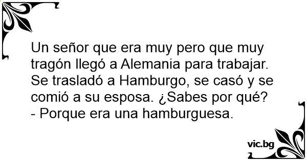 Un señor que era muy pero que muy tragón llegó a Alemania para trabajar. Se trasladó a Hamburgo, se casó y se comió a su esposa. ¿Sabes por qué?