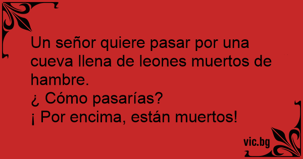 Un señor quiere pasar por una cueva llena de leones muertos de hambre.