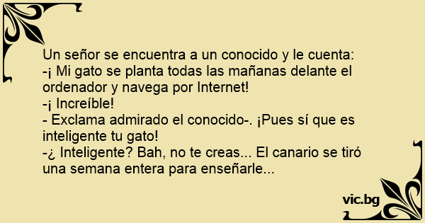 -¿ Inteligente? Bah, no te creas... El canario se tiró una semana entera para enseñarle...