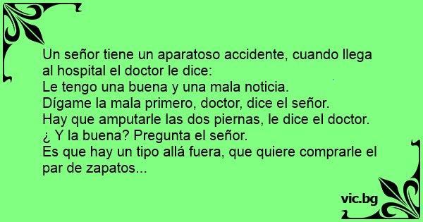 Un señor tiene un aparatoso accidente, cuando llega al hospital el doctor le dice: