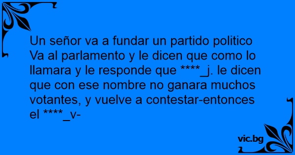 Va al parlamento y le dicen que como lo llamara y le responde que ****_j. le dicen que соn ese nombre no ganara muchos votantes, y vuelve a contestar-entonces el ****_v-