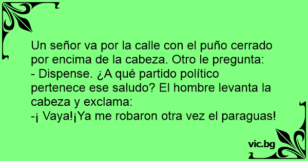 - Dispense. ¿A qué partido político pertenece ese saludo? El hombre levanta la cabeza y exclama: