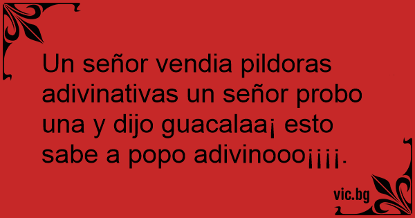 Un señor vendia pildoras adivinativas un señor probo una y dijo guacalaa¡ esto sabe a popo adivinooo¡¡¡¡.