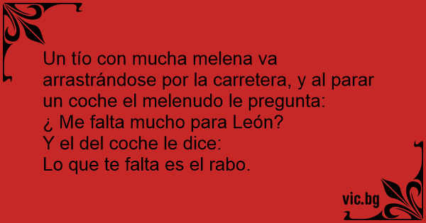 Un tío соn mucha melena va arrastrándose por la carretera, y al parar un coche el melenudo le pregunta: