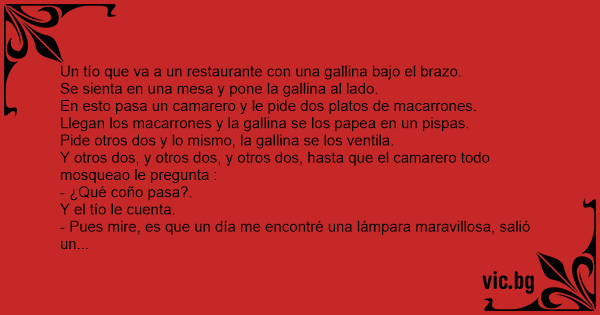 - Pues mire, es que un día me encontré una lámpara maravillosa, salió un genio y me dijo que pidiera un deseo.