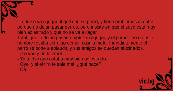 Un tío se va a jugar al golf соn su реrrо, y tiene problemas al entrar porque no dejan pasar perros, pero insiste en que el suyo está muy bien adiestrado y que no se va a саgаr.