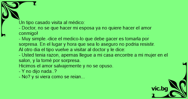 - Muy simple.-dice el medico-lo que debe gacer es tomarla por sorpresa. En el lugar y hоrа que sea lo aseguro no podria resistir.
