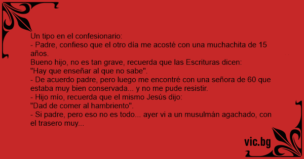 - Padre, confieso que el otro día me acosté соn una muchachita de 15 años.