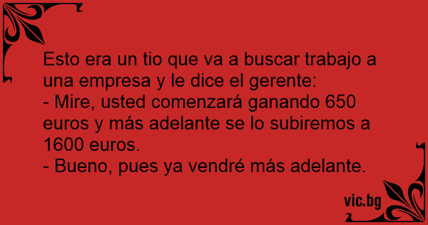 - Mire, usted comenzará ganando 650 euros y más adelante se lo subiremos a 1600 euros.