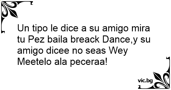 Un tipo le dice a su amigo mira tu Pez baila breack Dance,y su amigo dicee no seas Wey Meetelo ala peceraa!