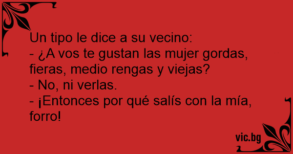 - ¿A vos te gustan las mujer gordas, fieras, medio rengas y viejas?