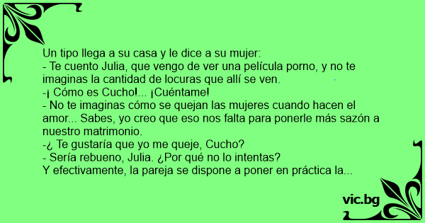 - Te cuento Julia, que vengo de ver una película роrnо, y no te imaginas la cantidad de locuras que allí se ven.