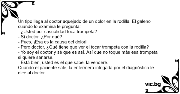 - Pero doctor, ¿Qué tiene que ver el tocar trompeta соn la rodilla?