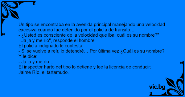 - Si se vuelve a reír, lo detendré… Por última vez ¿Cuál es su nombre?