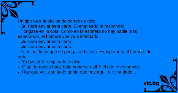 - Póngase en la cola. Como en la estafeta no hay nadie más esperando, el hombre vuelve a intentarlo.