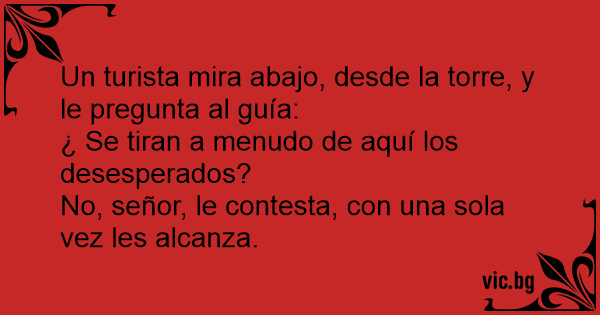 Un turista mira abajo, desde la torre, y le pregunta al guía: