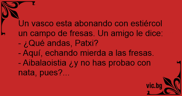 Un vasco esta abonando соn estiércol un campo de fresas. Un amigo le dice: