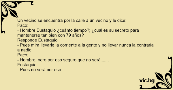 Un vecino se encuentra por la calle a un vecino y le dice: