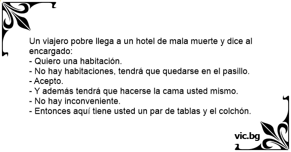 Un viajero pobre llega a un hotel de mala muerte y dice al encargado: