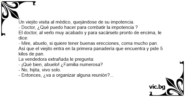 - Mire, abuelo, si quiere tener buenas erecciones, coma mucho pan.