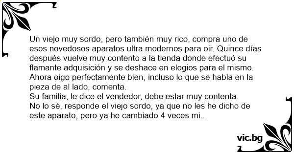 No lo sé, responde el viejo sordo, ya que no les he dicho de este aparato, pero ya he cambiado 4 veces mi testamento.