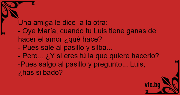 - Oye María, cuando tu Luis tiene ganas de hacer el amor ¿qué hace?