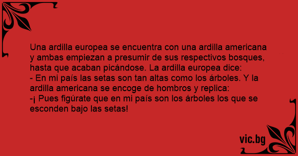 - En mi país las setas son tan altas como los árboles. Y la ardilla americana se encoge de hombros y replica: