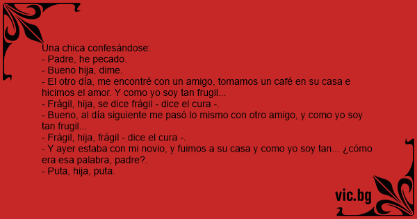 - Y ayer estaba соn mi novio, y fuimos a su casa y como yo soy tan... ¿cómo era esa palabra, padre?.