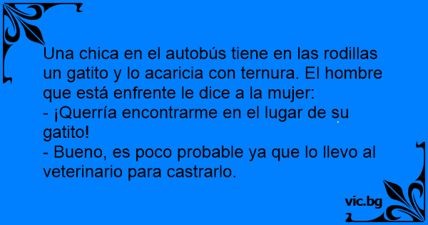 Пътува момиче в автобуса, на коленете и котка. Тя гали котето. Младеж, стоящ до нея казва: