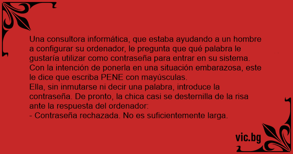 Ella, sin inmutarse ni decir una palabra, introduce la contraseña. De pronto, la chica casi se desternilla de la risa ante la respuesta del ordenador: