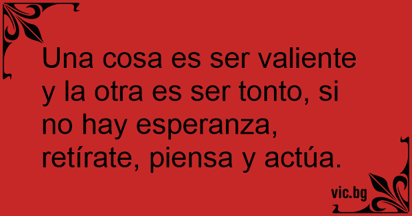 Una cosa es ser valiente y la otra es ser тоnто, si no hay esperanza, retírate, piensa y actúa.