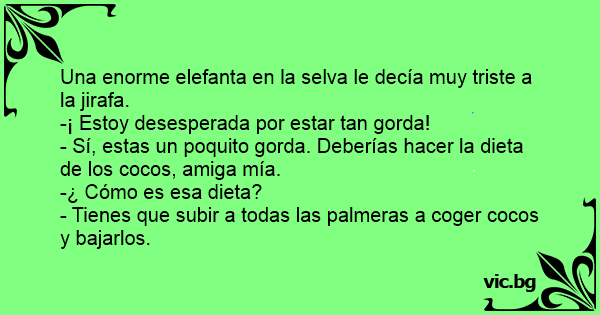 - Sí, estas un poquito gorda. Deberías hacer la dieta de los cocos, amiga mía.