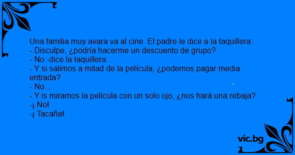 Una familia muy avara va al cine. El padre le dice a la taquillera: