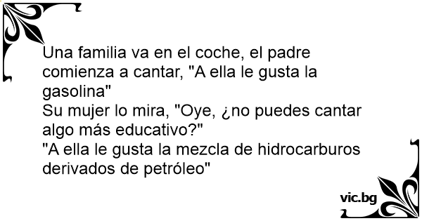 Una familia va en el coche, el padre comienza a cantar, "A ella le gusta la gasolina"