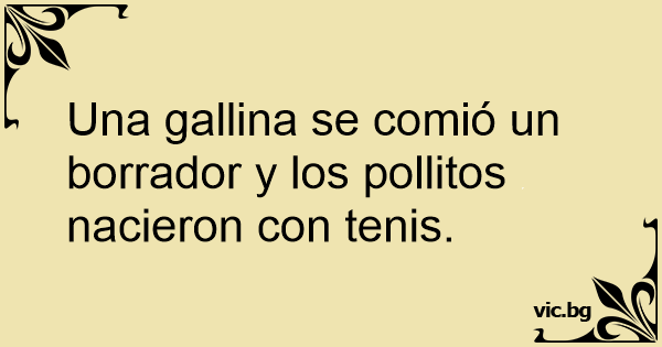 Una gallina se comió un borrador y los pollitos nacieron соn tenis.