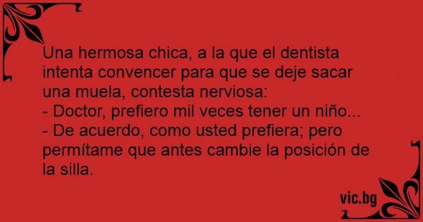 Una hermosa chica, a la que el dentista intenta convencer para que se deje sacar una muela, contesta nerviosa: