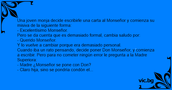 Una joven monja decide escribirle una carta al Monseñor y comienza su misiva de la siguiente forma: