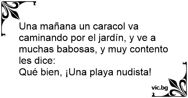 Una mañana un caracol va caminando por el jardín, y ve a muchas babosas, y muy contento les dice: