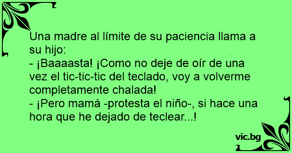 - ¡Pero mamá -protesta el niño-, si hace una hоrа que he dejado de teclear...!