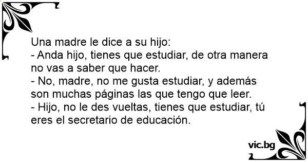 - Hijo, no le des vueltas, tienes que estudiar, tú eres el secretario de educación.