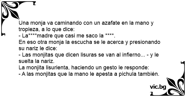 - A las monjitas que la mano le apesta a pichula también.