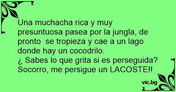 Una muchacha rica y muy presuntuosa pasea por la jungla, de pronto se tropieza y cae a un lago donde hay un cocodrilo.